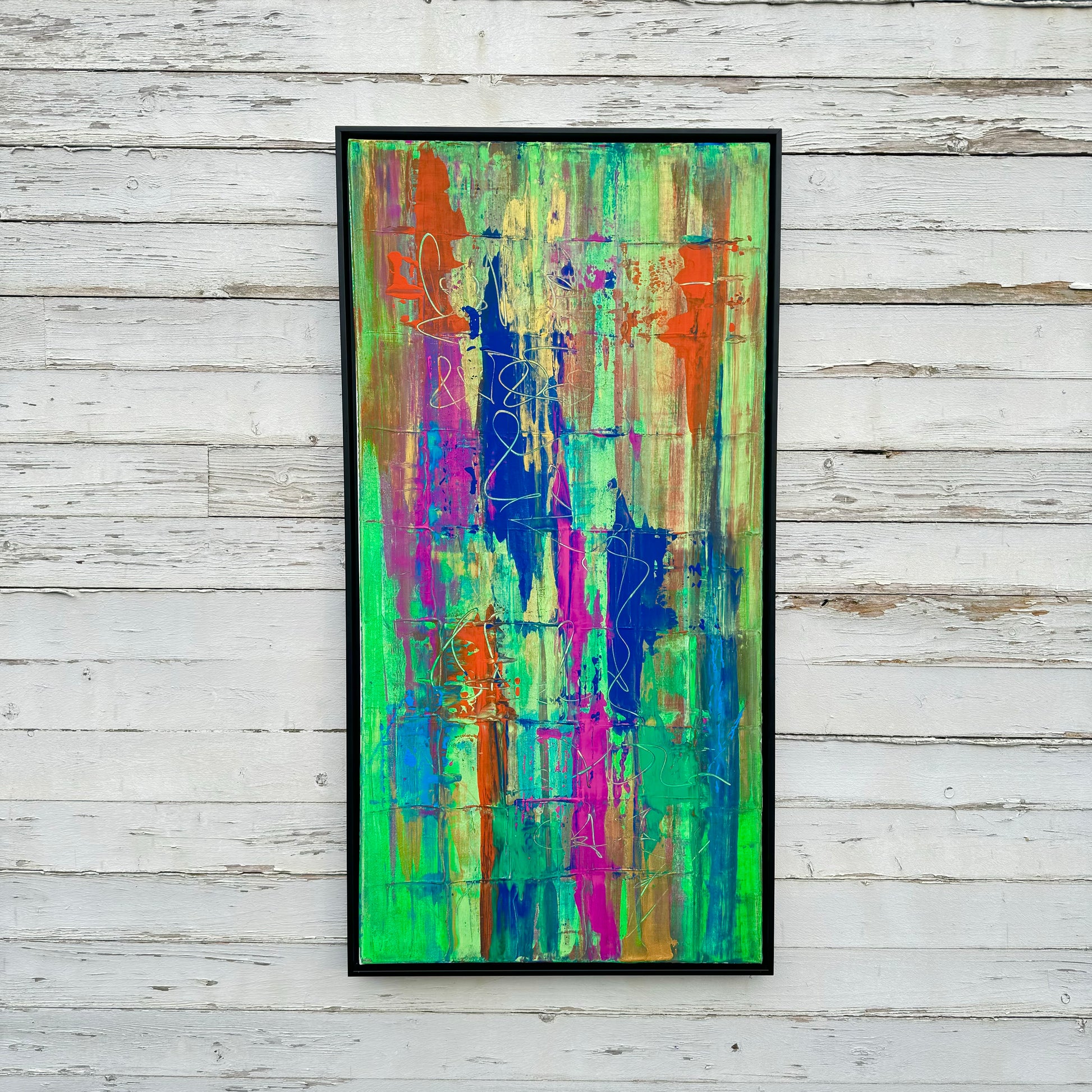 Dieses einzigartige Kunstwerk erstrahlt in kräftigen Farben, die die Vielfältigkeit der Literatur darstellen soll und die jeweiligen Gefühle, die durch Wörter ausgelöst, bei jedem Menschen anders wirken. Mit einer Größe von 100 x 50 cm ist es ein echter Blickfang und bringt Ihre Räume zum Strahlen.